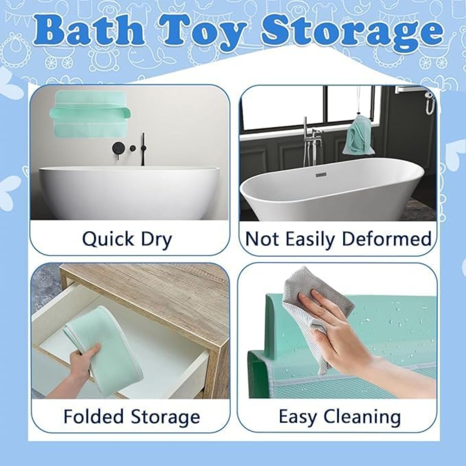 YIOBUDE Splash Guard for Bathtub,21.7'' Silicone Bathtub Splash Guard, Bathtub Splash Guard with 4 Mesh Storage Organizer,with 8 Suction Cups Topper Splash Guard (Green)